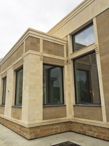 Проекты двух одноэтажных вилл выполнены в колониальном стиле с элементами ар-деко. Площадь дома 550 кв.м. Материал фасадов - ракушечник. Гостиная доминирует над общим объёмом дома, имеет плоскую кровлю, а фасады завершаются геометричным фризом. Большая площадь остекления, ориентация дома позволяют максимально использовать естественное освещение, наполняя дом уютом и теплом.